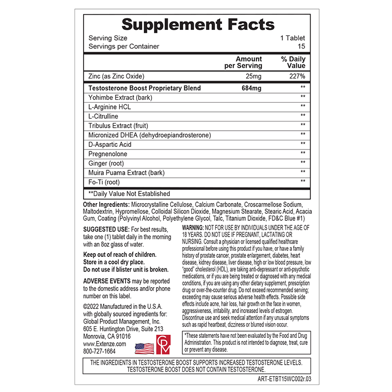 Extenze® Testosterone Boost Male Enhancement 15 Tablets